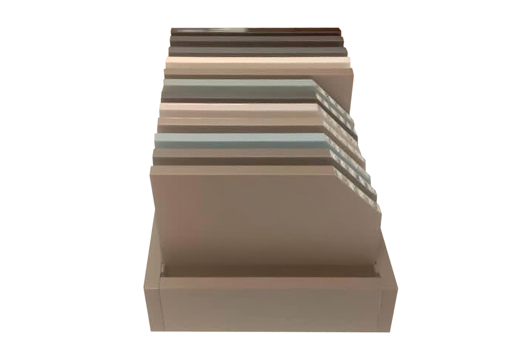 Sample doors display kit, used to showcase some color options and finish types to cusotmers.